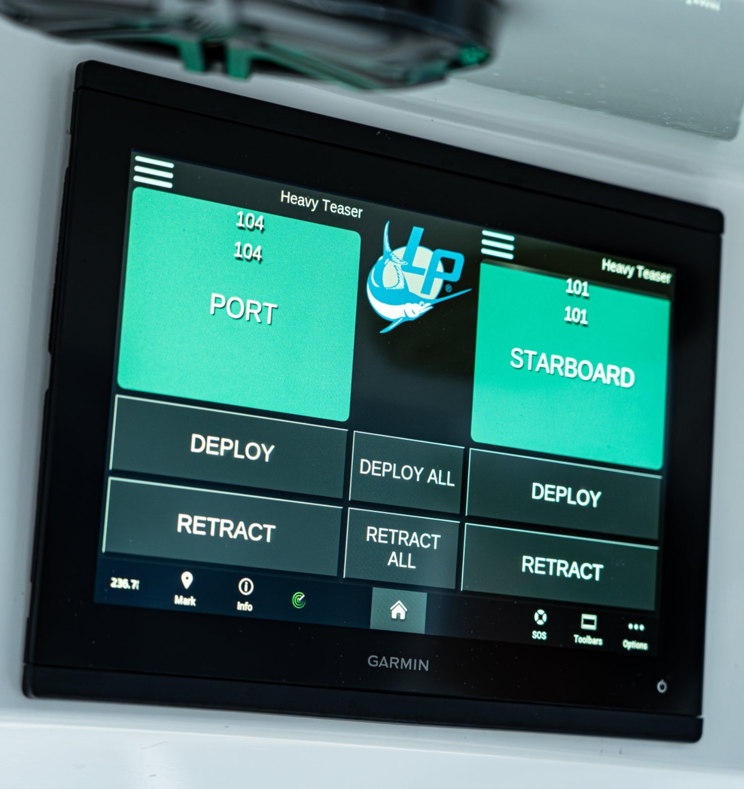 - Fully controlled by a Garmin MFD through the OneHelm Network and Active Captain App